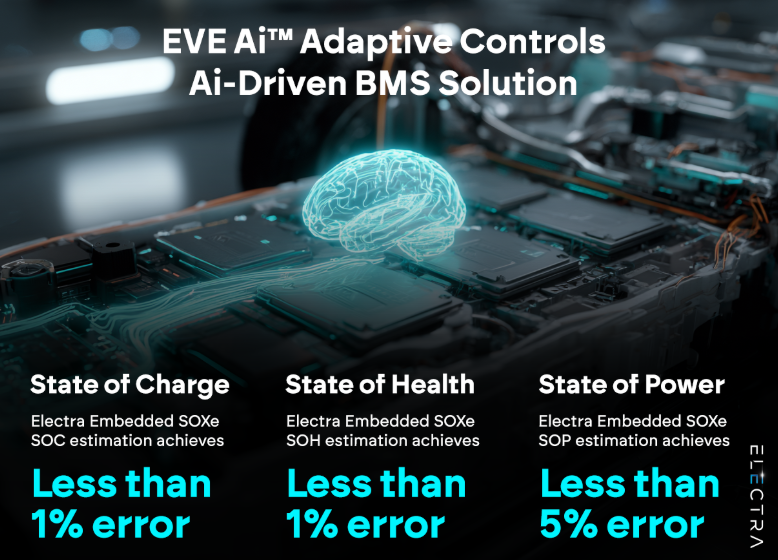 At its core, the EVE-Ai Adaptive Controls platform combines embedded AI software with physics-informed algorithms and advanced hardware to continuously assess key battery metrics like State of Charge (SoC), State of Health (SoH), and State of Power (SoP). Unlike traditional systems that rely on static models, Electra’s approach learns from real-world operating conditions including temperature changes, aging, and nonlinear behavior enabling more accurate predictions and smarter decisions in real time. When tested under automotive-like conditions, the system achieved industry-leading accuracy with less than 1% error in SoC and SoH measurements, far exceeding typical benchmarks.